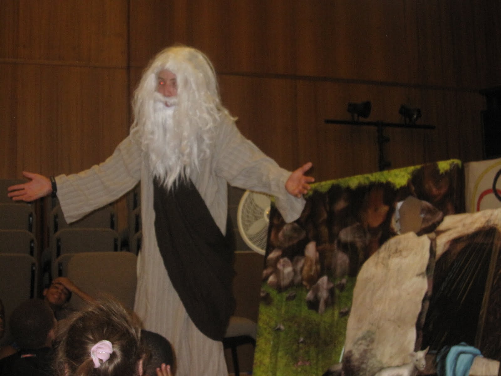 Those attending the service heard a great Gospel message from Pastor Larry (with the help of three men in Bible stories), had a visit from Spartacus a Roman soldier who helped crucify Christ ("and he let us do it to him"), saw an illusion performed and heard the Gospel using the five colors as part of the VBS logo. After that, we had lunch and a carnival. Lots of fun games, Icees outside and two VBS kids won t-shirts in a drawing.